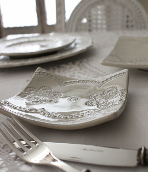 商 品 詳 細商品説明イタリアの家族で営む工房から届く手作りの食器ラ・セラミカ 温もりの有る黒土で作られるぽってりとした優しさを感じさせてくれます シャビーなアンティーク風のデザインと色付けをお楽しみください こちらはエンボスのデザインがモダンな印象のスクエアプレートSサイズ(Mサイズ有り) スイーツを置いたり、指輪など雑貨を入れても良いですね お色はアンティークホワイトのみの展開です ※1枚での価格となります ※食器洗浄機・電子レンジ・オーブン共に使用可能ですが、大切にされたい場合は手洗い・レンジ不使用をお勧めいたします ※全てハンドメイドの為、色ムラ、黒点、気泡など商品の個体差が見られますのでご了承下さいませ材質黒土(ブラッククレイ) ※少し厚みが有る焼き物です色アンティークホワイトサイズ縦横13cm角原産国イタリア製La Ceramica V.B.C ラ・セラミカ イタリア イタリア ラ・セラミカ 〜La Ceramica V.B.C〜イタリア北部に位置するモリーニという街に1979年創業の工房オーナー家族と職人達によってデザインから、ひとつひとつ丁寧に手作りされています黒土(ブラッククレイ)にクラッシックとモダンをミックスさせたオリジナルデザインは、アンティークな雰囲気を演出して品の良さと目を惹くエレガントな存在感があります大切な日のおもてなしやテーブルコーディネートに、贈り物にもお喜び頂ける特別なシリーズですイタリアからの温もりをお一人でも多くのお客様にお届けできますと幸いです